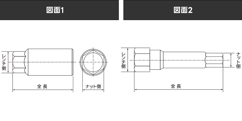 品番 画像 全長(mm) 外径(mm) レンチ側(mm) カラー 仕様
