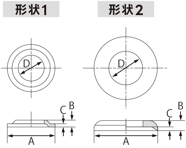 | 品番 | 製品画像 | サイズ | A(mm) | B(mm) | C(mm) | D(mm) |
